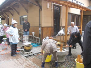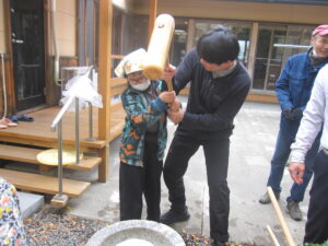 王喜の郷では、12月に餅つきを行いました。