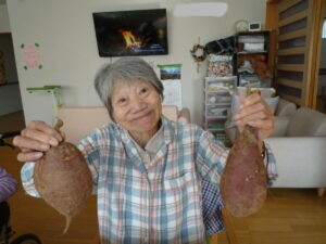とても小さいものから顔よりも大きな芋が収穫できました。🥔