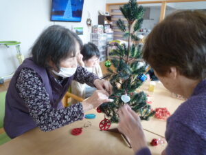 今月初めには入居者の皆様とクリスマスツリーを飾りつけしました。
