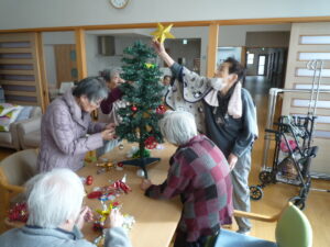 今月初めには入居者の皆様とクリスマスツリーを飾りつけしました。