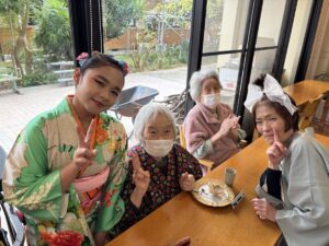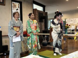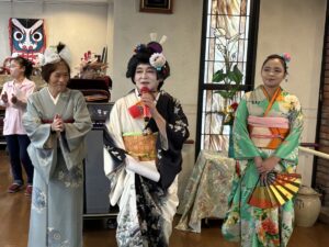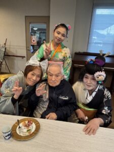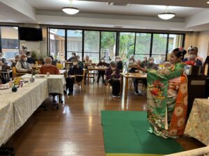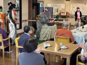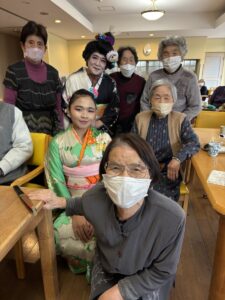 スタッフが舞子や芸子となり、踊りや太鼓を披露しました。参加してくださった方々の笑顔に包まれた、楽しい誕生日会となりました。
